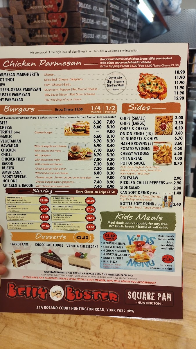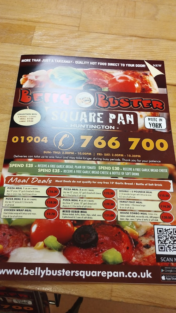 If you're looking for a satisfying meal in Huntington, look no further than the Belly Buster Square Pan at 14A Roland Ct, Huntington, York YO32 9PW, United Kingdom. This unique eatery offers a delightful and memorable dining experience that stands out in the local food scene.